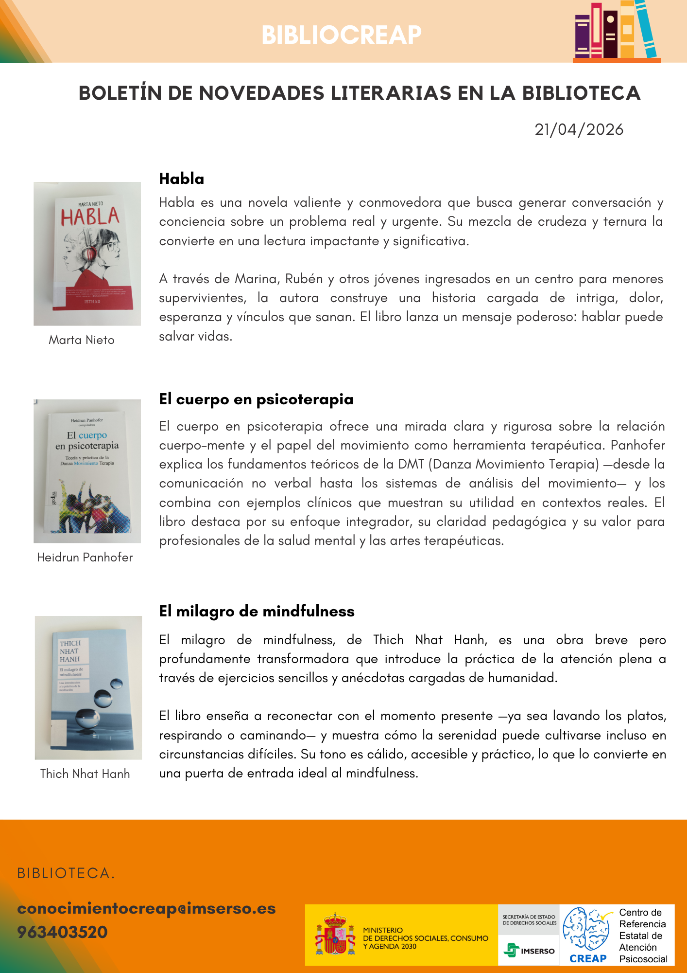 BiblioCreap selecciona y presenta estas novedades de forma periódica, permitiendo que profesionales, investigadores y lectores interesados se mantengan al día.