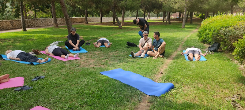 Imagen de archivo del Creap. Práctica de Yoga al aire libre con profesionales del ámbito de la atención primaria y la salud mental.