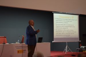 A continuación, tuvo lugar la ponencia de Roberto Pereira, psiquiatra y director de la Escuela Vasco Navarra de Terapia Familiar (EVNTF). Tras compartir una reflexión acerca de las tipologías y la utilidad de los diagnósticos, compartió de forma inédita con los asistentes el modelo de evaluación y trabajo que llevan a cabo él y su equipo desde el Centro de Salud Mental de Santurce.
