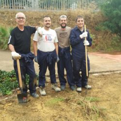El taller de jardinería, llevado a cabo diariamente desde el área de integración social y terapia ocupacional, es uno de los que cuentan con más participación por parte de los/as usuarios/as. Abarca numerosas actividades que permiten adaptar el taller a cada persona, en función de sus intereses y los objetivos específicos planteados en cada caso. Entre ellas, se encuentra el mantenimiento de las plantas interiores del centro y los jardines exteriores y la creación de un huerto ecológico. Por un lado, bajo un objetivo terapéutico, se realizan actividades como el manipulado de flores, riego y siembra de semillas, y, de forma más específica, la elaboración de esquejes o el abonado de la tierra. Por otro lado, se encuentran las actividades dirigidas a trabajar un objetivo prelaboral, que incluyen la poda de árboles como naranjos, plataneras o jacaranda y el uso de maquinaria pesada como el cortacésped o la desbrozadora.